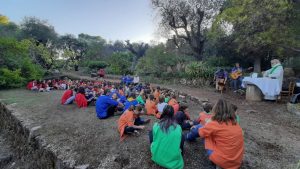 Après le gouter, montage des tentes avant la célébration et le temps de réflexion sur la dernière lettre de Baden Powell et l’évangile du jour qui nous a permis par petits groupe de méditer sur une prière universelle.