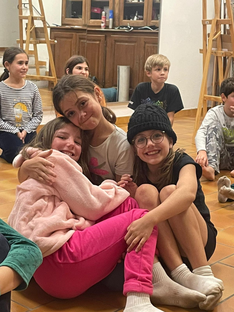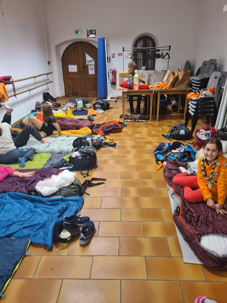 Après le goûter nous sommes rentrés dans la salle car le soleil se couchait puis nous avons installé les couchages pour le soir.