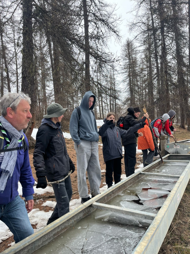 Quelques fous rires plus tard, nous reprenons la descente vers Beuil. Nouveau stop à des abreuvoirs gelés d’où nous essayons d’extraire les plaques de glace… ou de les casser sur un air de la Reine des neige !